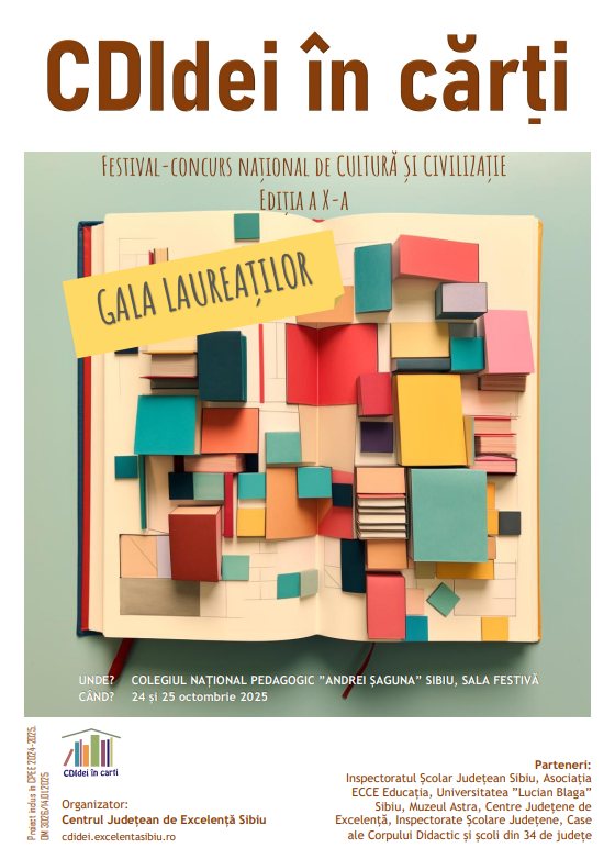 Festivalul-concurs național de cultură și civilizatie “CDIdei în cărți”, 2025, la a X-a ediție! Dragi colege și colegi, Festivalul CDIdei în cărți, a X-a ediție, 2025, a fost inclus, prin Ordinul de ministru nr. 3026/14.01.2025, în Lista proiectelor de educație extrașcolară naționale și internaționale care se desfășoară în România în anul școlar 2024 – 2025, …